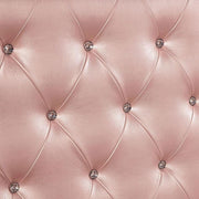 Ariston Rose Pink Full Bed, 82 1/4"L X 58"W X 54"H, 125lbs. Resting atop elegant bun feet, this glamorous bedroom set brings a touch of stylish appeal that instantly brightens any space! Sophisticated button tufts adorn the leatherette upholstery of the headboard, which brings more attention to its thick and chic frame. Mirrored accent panels bring extra glitz to the design and make this a stunning set to admire! Features: Padded Leatherette Headboard Crystal-like Acrylic Button Tufted Optional Swivel Chest with 5mm Beveled Mirror