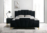 Coming in a bold color, this bed stays true to its glam roots. Between the classy, shell tufting and the gold-coated steel legs, it is designed for the sophisticated urbanite and their modern city oasis. The thick and padded headboard and footboard are upholstered in soft flannelette, so are the side rails and the rest of the piece--luxury and comfort rolled into one stunning product.