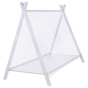 This twin-size tent bed brings a playful touch to any bedroom while offering practical comfort. Crafted from heavy-gauge metal with a powder-coated pink finish, the frame features a charming tent-style design. The included sheer fabric canopy drapes over the structure, creating a cozy retreat. Its platform base supports a mattress without the need for a box spring, ensuring a low-profile look while maintaining sturdy support.