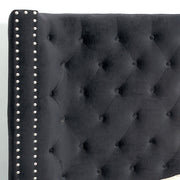 Charming and simple, this fabric bed suits all styles and will surely become a versatile piece to be cherished for years to come. The timeless, wingback headboard curves in ever so slightly and is button-tufted in a beautiful diamond pattern. Meanwhile, edges are lined with nailhead trim to add a touch of visual interest while maintaining the clean, classic look with its velvet-like upholstery.