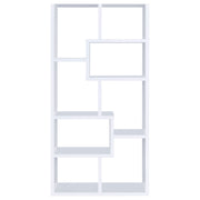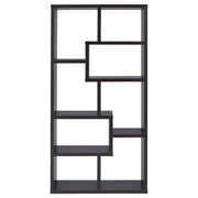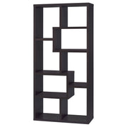 With seven convenient shelves, this bookcase is perfect for keeping your reading materials in one place. Sturdy and durable, it's expertly crafted from MDF, particle board, and engineered veneer. Its striking silhouette is bold, yet refined with geometric shapes of various sizes. It's available in your choice of four stunning finishes to match your decor. Whether it's placed in a home office, living room, or bedroom, this bookcase is an exquisite enhancement to any home.