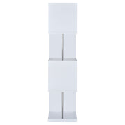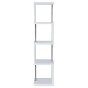 Go with the flow in a modern space with an edgy, artistic look. This four-tier bookcase is a great option for a compact space. Enjoy a modular, geometric silhouette and a choice of finishes. Steel supports reinforce shelving that hosts books and decor. Choose from finishes that intensify the attitude of your custom space. Key Features: • Modern cube-style bookshelf in black finish with chrome metal rod accents • Stacked four-tier open frame provides versatile shelf space • Engineered wood with laminate veneer ensures lasting performance • Electroplated chrome rods offer sleek, polished contrast • Ideal for displaying books, plants, or decorative objects • Tip-over restraint included for secure wall attachment