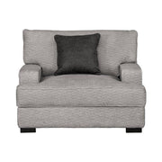Add rich comfort to your living space with this handsome collection. Loose pillow backs and seat cushions are all trimmed with same-color welt that add a sense of refinement. The low arms and wide seating it offers creates an inviting and bold aesthetic. The monotone colors from the body fabric and the assorted patterns on the accent pillows work very will with contemporary spaces that go for the understated look.
