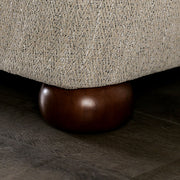 Bring in a classic piece into your living space! This is an English rolled arm chair with all the expected flair: relaxed, low rounded arms and round bun legs. But this one is updated with loose pillow back and a large throw pillow. Oversized in width, this bench-style chair is wider than average offering maximum comfort.