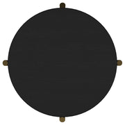 This round end table showcases a refined blend of natural and industrial elements, perfect for modern interiors. Crafted from Asian hardwood, engineered wood, and ash veneer, its finish highlights the table's organic grain for a subtle, rustic appeal. The lower shelf features natural woven rattan, offering functional storage with a stylish touch. Sturdy aged brass-finished metal legs provide contrast and durability. Ideal as a side table or accent piece, it combines elegance and utility effortlessly.