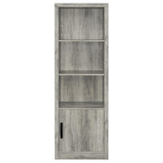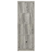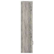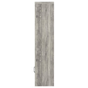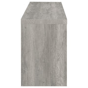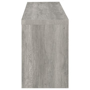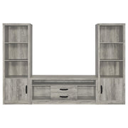 Design the entertainment mecca you've always imagined with this three-piece media center. Including a central TV stand and two media towers, the set delivers simplicity of silhouette with plenty of storage options to accommodate your needs. Gray driftwood finish laminate surfaces are durable and resistant to scratches and denting, offering impressive durability. The TV stand offers two open shelves and two drawers, each with contrasting hardware that adds a pop of dimension. The media tower each add three upper shelves and a lower cabinet, creating the perfect blend of storage and display spaces to bring personality to your welcoming living room.