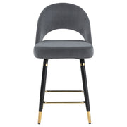 Perfect for contemporary entertainment areas, this chic, modern, glam counter height set hosts four guests comfortably. A round, clear glass top and round, column-inspired pedestal base float elegantly within your spacious room or breakfast nook. The pedestal table base boasts a brilliant faux diamond inlay and mirror tile that shimmers stunningly. Four counter height chairs feature open rounded backs upholstered in soft and smooth velvet for extra comfort and support. Each seat rests on slender legs, complete with golden metallic accents and a sturdy footrest for a dramatic contrast and glam touch.