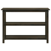 Bring an energizing look to a transitional space. With linear styling and geometric x-shapes on its side panels, this console table creates an eye-catching effect. Deep merlot offers a scrumptious, dramatic finish that blends well with surrounding furnishings. Find plenty of shelf space to match its rectangular surface. Place behind a sofa or against a wall for a central focus. Key Features: • Console table with rectangular top and two open lower shelves for storage and display • Deep merlot finish enhances visual warmth with a rich, dark wood tone • Geometric X-side panel design adds decorative structure and open feel • Designed to function as an entryway table, sofa table, or hallway focal point • Crafted from rubberwood, engineered wood, and rubberwood veneer • Durable shelves offer added support for everyday essentials and decor items