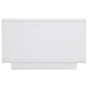 This rectangular coffee table exudes a sleek, modern aesthetic, thanks to a pristine white high gloss finish over engineered wood. Serving as a center table, cocktail table, or accent table, it introduces a clean, low table silhouette. The open shelf provides easy-access storage for reading materials or décor, complementing contemporary living rooms with minimalist flair.