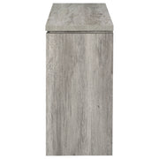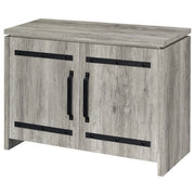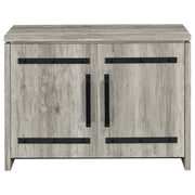 This storage cabinet features a clean-lined silhouette with industrial-inspired hardware for a functional, modern-rustic look. Crafted from engineered wood with a scratch-resistant and eco-friendly laminate veneer, it showcases a grey driftwood finish that mimics natural wood grain. Behind two doors are four interior cubbies that provide versatile storage for shoes, accessories, or everyday essentials—ideal for entryways, living areas, or compact spaces. Key Features: • Storage cabinet with two-door front and sleek industrial metal hardware • Grey driftwood finish offers a rustic tone with modern versatility • Four interior cubbies organize shoes, bags, or home essentials • Crafted from engineered wood with a durable laminate veneer surface • Black metal handles and trim create a clean, modern-rustic contrast • Perfect for entryways, mudrooms, or any compact organizing space