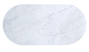 KOBLENZ Coffee Table, Dark Walnut, 48"L X 24"W X 18"H, 70.2lbs. Posh and chic, these rounded tables are reminiscent of the bygone era of Hollywood stars. Infused with Art Deco inspiration, each piece features matte gold frames that hold up the top and bottom shelves. The top is made of faux marble in a glorious white shade with subtle variations in color. The sides add texture to an otherwise sterile piece--reeded panels curve around the corners and conceal a storage drawer for a slick, contemporary look.