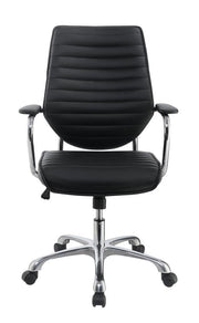 Cool, classy, and comfy, this office chair has it all. A tall, wide back combines with a padded seat and armrests to ensure maximum comfort and stability. Its swivel base is complete with casters, allowing you to move around with ease. Its seat is embellished with sleek, straight lines for an added touch of style. Constructed with high-quality aluminum, this versatile chair offers superior support and durability.