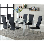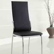Bold design and modern details make these chairs great additions to any modern dining area. With padded leatherette seat and chrome legs, this piece is available in black or white.