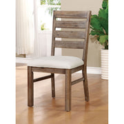 Sit down to a nice family meal around this rustic dining collection and feel the southern charm flow through your home. The natural tone finish brings out the rustic wood grain details. Bright ivory cushions add a softness to the overall visual while distressed texturing emphasizes the wood craftsmanship.