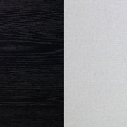 A notable color contrast and ultra-dramatic look make an impact in your modern or transitional dining space, creating a focal point worthy of consideration. This seven-piece wood and fabric dining set is adaptable to embellish a host of settings important to your everyday living. Distressed black finish wood construction on all pieces gains attention to a minimalist table design with straight, flat leg sections under a sleek top with linear silhouetting and a dimensional top chamfer curving along its edges. Chairs offer a clean silhouette with black finish wood framing, tapered legs, and ornate notched tops with linear carvings thrown in for extra dimension. Soft ivory fabric upholstery is intriguingly placed on both sides of top cushions and over a padded seat.