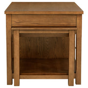 Designed with everyday flexibility in mind, this kitchen island combines storage, seating, and workspace in a single, streamlined footprint. Ten drawers with dark grey pulls keep utensils and tools close at hand, while a spacious open shelf adds room for bulkier items. A pull-out extension table slides smoothly from the side, transforming the island into a meal prep zone or dining spot. Two backless stools store discreetly underneath on built-in stemware-style supports, blending function with rustic charm in a warm dark oak finish. Key Features: • Kitchen island features a pull-out extension table for additional prep or dining space • Ten drawers with metal handles provide convenient enclosed storage for kitchen tools • Two backless stools stow neatly beneath on integrated stemware-style storage rails • Warm dark oak finish enhances wood grain and adds rustic character to the design • Crafted from solid rubberwood, engineered wood, and oak veneer for daily durability • Open lower shelf offers flexible storage for cookware, baskets, or larger kitchen items
