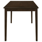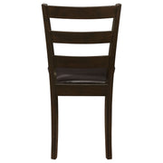 This five-piece dining set brings a perfect blend of everyday comfort and timeless style. Crafted from solid rubberwood, engineered wood, and okume veneer, the rectangular table features clean lines and tapered legs in a rich cappuccino finish. The matching chairs and bench offer padded seats upholstered in dark brown leatherette for a warm, inviting look. Ideal for family meals or casual gatherings, this versatile dining set adds a refined yet approachable touch to contemporary or transitional interiors. Key Features: • Five-piece dining set combines timeless design with modern everyday functionality • Rectangular table in cappuccino finish features clean lines and bold tapered legs • Crafted from rubberwood, engineered wood, and okume veneer for durable strength • Ladder-back chairs include padded seats in dark brown leatherette upholstery • Matching bench adds flexibility and extra seating for casual dining gatherings • Perfect for family meals or hosting guests in transitional or modern interiors