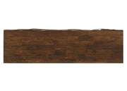 Made of real pine wood veneers and rubber wood, this stylishly rustic table set will bring a breath of fresh air into your home. Rest the flat side towards the wall, while you leave the smooth, natural edge open for people to see. It's not short in the technology and convenience front eitherthe table can be assembled with the USB charger and power outlets either to the right or left edge.