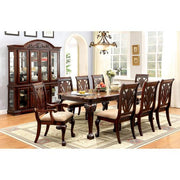 PETERSBURG I Cherry Dining Table w/ 1 X 18" Leaf, 82"(64" + 1 X 18"Leaf)L X 42"W X 30"H, 143lbs. This bold traditional style table is ideal to fit any grand dining space within the home. This piece is available in dual sizes, has claw feet fine points, and comfortable seating. Features: Traditional Style Elegant Chair Back Details Padded Fabric Chair Cushions Curved Claw Feet Solid Wood, Wood Veneer, Others Cherry Finish