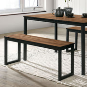 Take your home decor up a notch with this modern industrial piece. The set includes a beautiful replicated wood table top finished in warm walnut, which contrasts with the black metal frame and legs. A pair of benches in the same color scheme is included, with the legs in a stable U-shape design. The sturdy metal legs allow up to 300 pounds weight capacity, making this set not only visually striking but also durable.