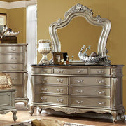You may not have been born royalty but, with this gorgeous bedroom set, you'll be falling asleep in the lap of luxury every night! Boasting beautifully carved wooden details, the dresser complements the fanciful bed with coordinating decorative accents and antique-inspired hardware drawer pulls.
