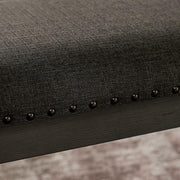 A gray wood grain finish adorns this fashionable and practical bench. Featuring fabric upholstered padded seat, the inclusion of a bench delivers style along with comfort to any dining area.