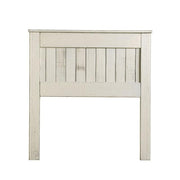 This luscious solid wood headboard is painted in a distressed white finish. The wooden planks along the headboard invite a rustic aura into your bedroom.