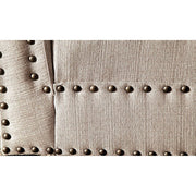 Add subtle color to your bedroom or living room with this stylishly upholstered chaise. The curved arm adds emphasis to the lengthy structure while nailhead accents pop against the smooth fabric.