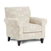 SALTNEY Accent Chair, 38"L X 32"W X 38"H, 51lbs. Here is a petite chair designed to be quaint-yet-impressive, solid-yet-affordable. A fine take on a standard style, the rounded arms and welt cord trim are characteristics of enhancement, neatly complimented by uniquely tapered cubed-wood feet. It's true charm is in the upholstery; durable knit fabric enhanced by a pleasant subtle pattern of light pastels that appears etched, almost primitively art deco.