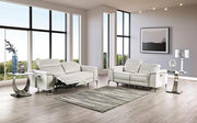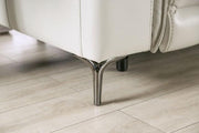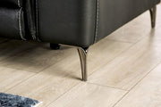 There is no compromising comfort even with a living room ensemble as stylish as this one. Supported atop tall, metal legs, each piece showcases contemporary style from their wide waterfall style arms and sleek tight backs all upholstered in a sleek kind of breathable leatherette. Discreet reclining functionality is offered with plush cushions on the footrest and headrest that both recline and retract with a push of a button. Whether you need it for its remarkably stylish looks or undeniable comfort, you cant go wrong with these spectacular pieces for your living room.
