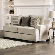 This beautiful loveseat features clean lines with classic silhouettes to fit a wide variety of styles. Pillow backs and plush cushions provide a plush seating experience, all made from luxurious chenille upholstery. Trimmed in matching welt, the wide track arms are low in profile, perfect for your hands or head. It comes with accent pillows designed specifically to match the neutral palette of the base color--hues of beige and gray catch the attention of guests and family alike.