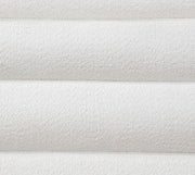 Let this chic and comfy set bring excitement and personality to your living room. Not only is the silhouette fun, inviting, and unique, but the fabric itself is a statement of its own. Bright white boucle fabric wraps around the piece, filling every deep horizontal tuft. Tall tuxedo-like arms and backrest cradle the lengthy bench-style seat cushion between. Gold-plated steel legs is the proverbial cherry on top of this decidedly alluring piece.