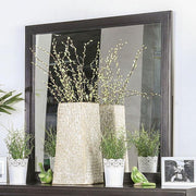 Berenice Espresso Mirror, 38"W X 1 1/8"D X 38"H, 29.48lbs. Transform your bedroom with this transitional style mirror. Built with solid wood and wood veneers, the simple design of this mirror brings a contemporary blend of traditional and modern appeal. Features: Transitional Style Solid Wood, Wood Veneer, Others Espresso