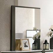 BIRSFELDEN Mirror, White, 34 5/8"W X 1 3/8"D X 39 3/8"H, 37.5lbs. Just one look, and there is no doubt where this mirror belongs--in a modern home. For starters, the frame is finished in dark, metallic gray. Look closer, and you'll notice how the frame itself is not even in width all around; this purposeful asymmetry adds more to the appeal and modern vibe.