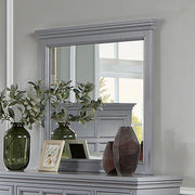 Take serenity home with this mirror from the Castile collection. The beautiful crown molding details and gray finish complement each other well. Product Dimensions: 40"W x 3"L x 42"H