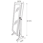 This impressive jewelry Cheval mirror is more than just a pretty face. At almost five feet tall, this tilting mirror has enough mirror space to ensure that you can check your outfit from head to toe. It opens up to storage space consisting of three lower horizontal shelves and hooks and right holders that hold all your valuables with ease. A built-in, four-inch deep jewelry box safeguards other precious accessories. It's finished in a handsome dove grey that matches any decor. Key Features: • Contemporary style with continuous mirrored front against soft dove grey frame • Features full length tilting mirror • Three lower horizontal shelves hold beauty essentials • Plenty of hooks and ring holders for jewelry storage • 4" deep jewelry box