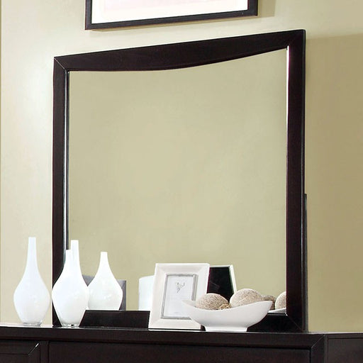 SNYDER Brown Cherry Mirror, 36"W X 38"H X 3/4"D, 24.2lbs. Gorgeous lines and sleek bases give this bedroom furniture a distinctive contemporary edg...