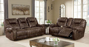 KENNEDY Motion Loveseat, 75 5/8"L X 41 1/4"W X 41 1/4"H, RECLINED: 75 5/8"L X 66"W X 32"H (SEAT HT: 20 1/2", SEAT DP: 23 1/2"), 176lbs. Flip up the footpads and recline to find the perfect position to stretch out or take a nap. Plush back and head cushions, along with the padded arm rests, let you sink in, and your daily stress fades away. Get tucked in this soft leatherette masterpiece.