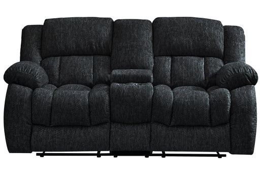 View full detailsBahrain Upholstered Motion Loveseat with Console Charcoal