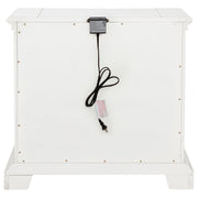 Charming and functional, this two-drawer nightstand blends classic design with thoughtful details. A vintage white finish softens the ornate carvings and sculpted base, while antique bronze handles bring graceful contrast. Dual USB ports are hidden at the back for modern convenience, while felt-lined drawers offer protected storage. Built from poplar and engineered wood, it balances timeless beauty with everyday function. Key Features: • Two-drawer nightstand with carved details and sculpted base for traditional appeal • Vintage white finish brings an aged, romantic tone with softly distressed edges • Antique bronze handles add decorative contrast and timeless character • Dual USB charging ports (USB-A and USB-C) discreetly built into the back panel • Felt-lined top drawer and smooth glides ensure soft, functional storage access • Crafted from poplar and engineered wood for durable, heritage-inspired beauty