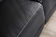 There is no compromising comfort even with a living room ensemble as stylish as this one. Supported atop tall, metal legs, each piece showcases contemporary style from their wide waterfall style arms and sleek tight backs all upholstered in a sleek kind of breathable leatherette. Discreet reclining functionality is offered with plush cushions on the footrest and headrest that both recline and retract with a push of a button. Whether you need it for its remarkably stylish looks or undeniable comfort, you cant go wrong with these spectacular pieces for your living room.