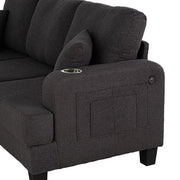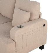 Contemporary, Fabric, Engineered Wood, Others, Stainless Steel Cup Holder on Both Arms for Sofa & Loveseat, Pillows Included, USB-A & USC-C Charging Port on Sofa, Side Pockets, Storage Ottoman