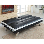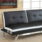 A simple look becomes striking with red and white accents contrasting with the deep black leatherette. What's more, bluetooth speakers on both sides allow you to play music wirelessly.
