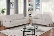 This leatherette sofa will bring you back to the long gone era of cigars and wine. Here we find elements such as loose pillow backs, a pair of bolter pillows, and a tufted one-piece seat cushion. The arms are trimmed with welt that innocuously matches the color of the body. The simple, wooden legs are tapered and finished in warm walnut. Exuding an unmistakable mid-century modern vibe, this retro-modern piece reminds us of a few decades back, with colors that explicitly evoke the turn of the late 60s.