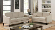 KASSEL Sofa, 75"L X 31"W X 34 1/2"H (SEAT HT: 19", SEAT DP: 21 1/2"), 105.6lbs. For all intents and purposes, the Kassel collection is a simple set; but oftentimes, the simplest options are not only the best, but also the most beautiful. Take for example the square cushions of this sofa--they are upholstered in flannelette and designed to fit perfectly side by side, providing comfort alongside the matching loose back pillows. The simple curves of the arms provide a silhouette that's decidedly modern. The walnut-finished legs are simple, too--rounded and tapered ever so slightly at the tip to provide a sleek-looking foundation to this unassuming sofa.