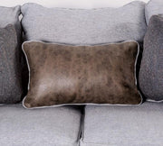 Give your guests a warm welcome with this deluxe living room ensemble. Soft fabric in a neutral tone wraps every inch of this piece, from the solid wood frame to the loose back pillows. Bold, curvaceous arms come enhanced with welt trim, so are the seat cushions filled with foam and resting on a sturdy spring base. The throw pillows come in muted dark tones to beautifully complement the lighter shade of the comfy, oversized seats.