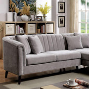 GOODWICK Sectional, 99"L X 59 7/8"W X 34 5/8"H, 171.2lbs. This mid-size sofa balances the classic appeal of a Chesterfield with the functionality of a modern sectional. The wrap-around arms and button tufted back evoke popular mid-century designs, and the end seat extends out into chaise to make for an L-shaped sectional. Fine details including the soft chenille upholstery and tapered legs make this stylish piece stand out.