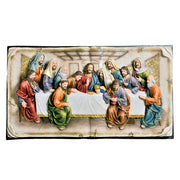 HOMILI Last Supper Plaque, 35"L X 8 1/4"W X 20"H, 25lbs. With turned, page-like corners and 3D embossed characters, this ceramic plaque is an expressive rendition of the Last Supper.