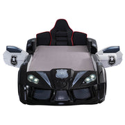 This is what dreams are made of! Create a fun-filled kids room with this sleek and comfy twin bed. A stylish interpretation of the real patrol cars, it features magnetic doors that swing open and upholstered headboard shaped like a car seat. Use the included remote control to pick one of the four possible sound effects while you fill the room with ambient lighting from embedded LED lights in the wheels. Headlights serve as night lights for those intimate, bedtime stories.