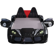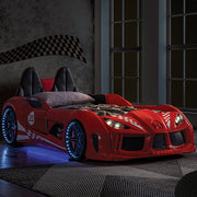 This sleekly designed race car bed comes in a variety of colors and styles for the future speed enthusiast. The wheels have embedded LED lighting, while the headlights double as a night light. Side doors swing open realistically and close magnetically, while the sides and headboard shaped like seats are upholstered in padded leatherette. But it's not just all about looks--the bed comes with a four-option music selections via wireless remote controller for maximum bedtime fun!